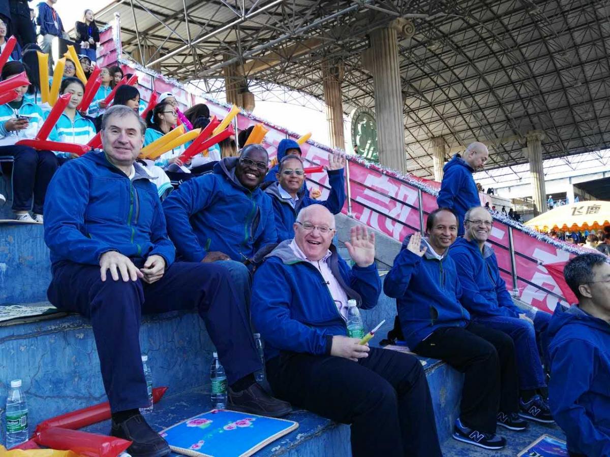 运动会开幕式上,公司入场队伍由20名中方教职工,15名外籍教师和20名员工代表组成,彰显了公司教育国际化的办学特色与和谐共进的团队氛围。师生代表手持必威西汉姆官网平台及合作校的旗帜,呼号“商为世尚,学为品行,全面发展,携手同行”的团队口号,将“商院人”的新风采集中展现。